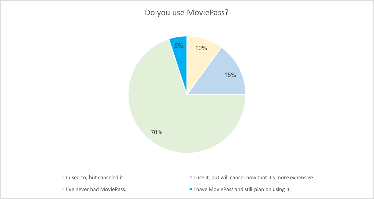Turns out the vast majority of Survey Junkie members have never used MoviePass, at an incredible 70 percent.